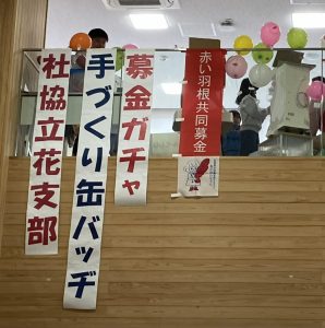 たちばなまつり 社協も出店 11月2日(日)、立花南生涯学習プラザで「第54回たちばなまつり」(たちばなまつり実行委員会・主催)が開催され、立花地区内の各団体やプラザ利用サークルなどが多数参加されました。 丸山実行委員長(社協立花支部長)のごあいさつにより、まつりがスタート、プラザの各階や周辺でステージ発表や飲食の出店などでにぎわいました。 社協立花支部はイベント企画部会が中心となり「手づくり工作」として缶バッヂ作りを行ないました。子どもから大人まで、自分だけのオリジナルデザインや社協のマスコット・あまりんのイラストバッヂなどを部会員の皆さんの協力のもと、楽しく作りました。 また、共同募金ガチャやくるくるコイン募金、社協加入促進、地域福祉専門員の活動の啓発、そしてあまりんによる会場内のPRも行ない、昨年以上に好評でした。