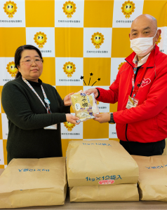 生活協同組合コープこうべ様から1㎏のお米を48袋ご寄付いただきました!