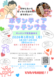 2026年3月9日(月)18:30より、立花南生涯学習プラザ3Fホールにて「ボランティアマッチング会」を開催します!